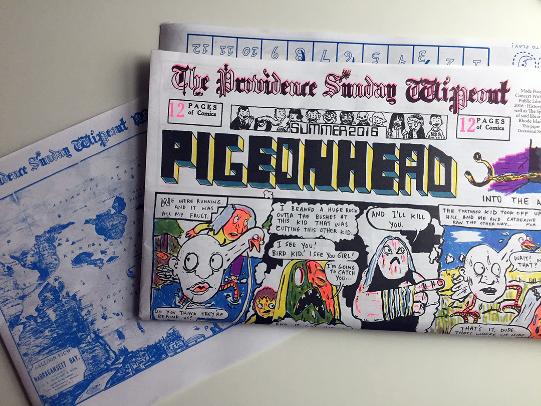 A giant risograph newspaper featuring work by kid artists and adult artists inspired by the weird stuff in the Providence Public Library Special Collections. 17"x22"