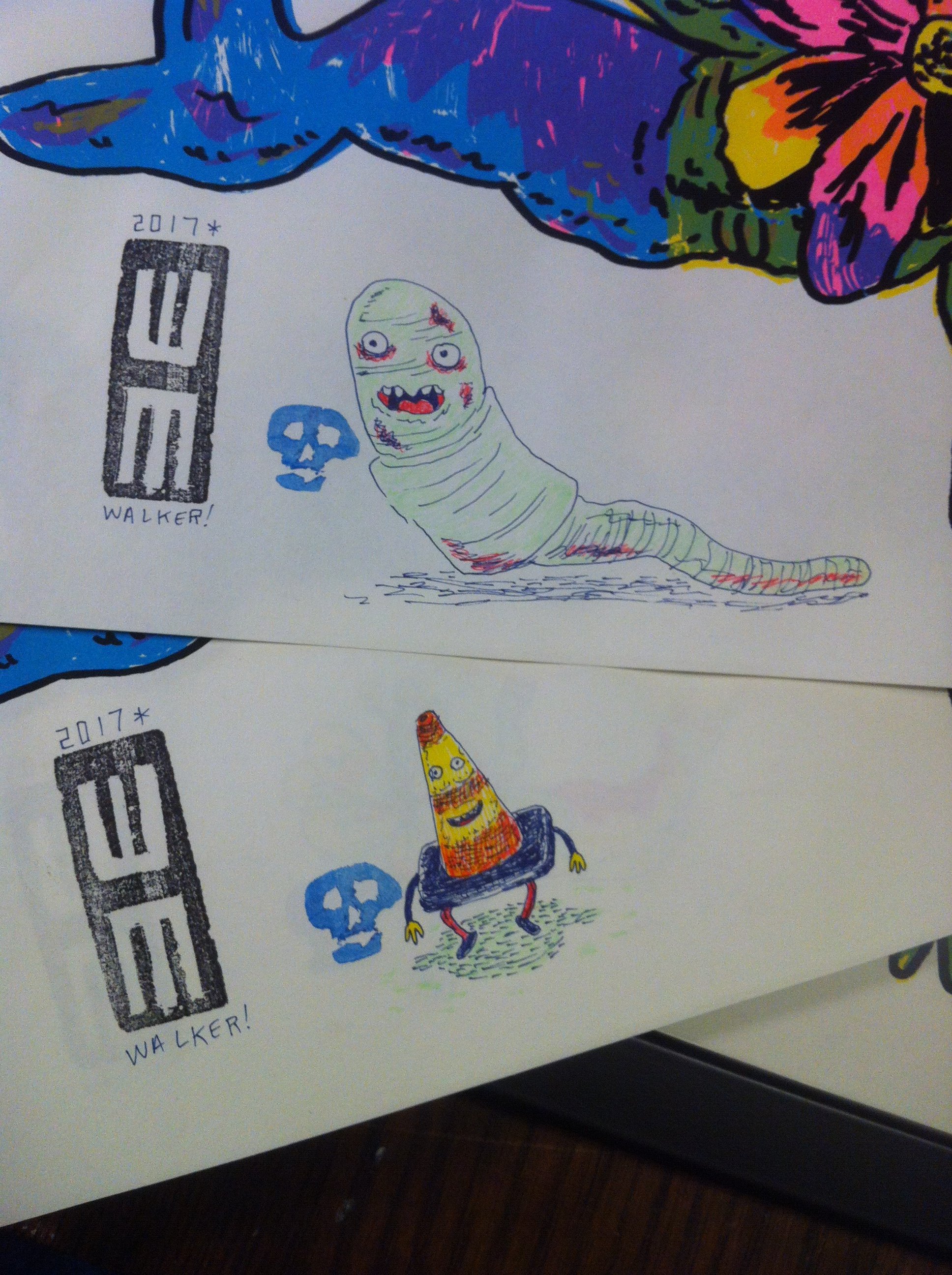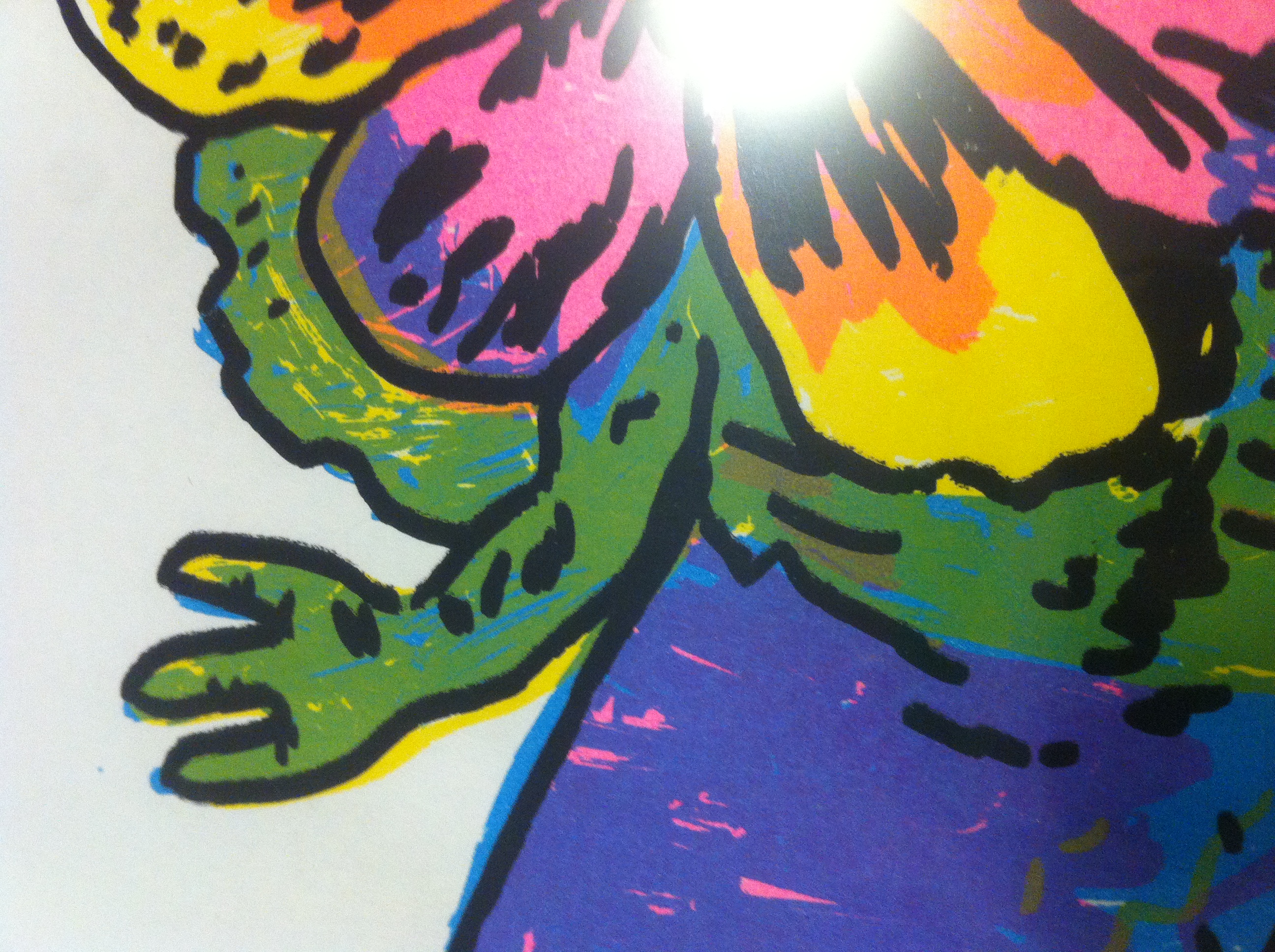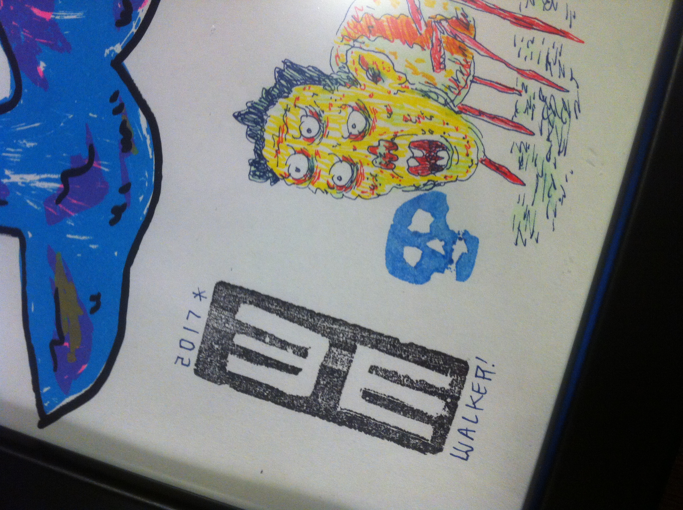 Each Blob Revelation screen print is a 4 layer screen print, signed and numbered with a couple of chop stamps and each has a little unique drawing on it! 8" x 11"Black frame. Edition of 15.