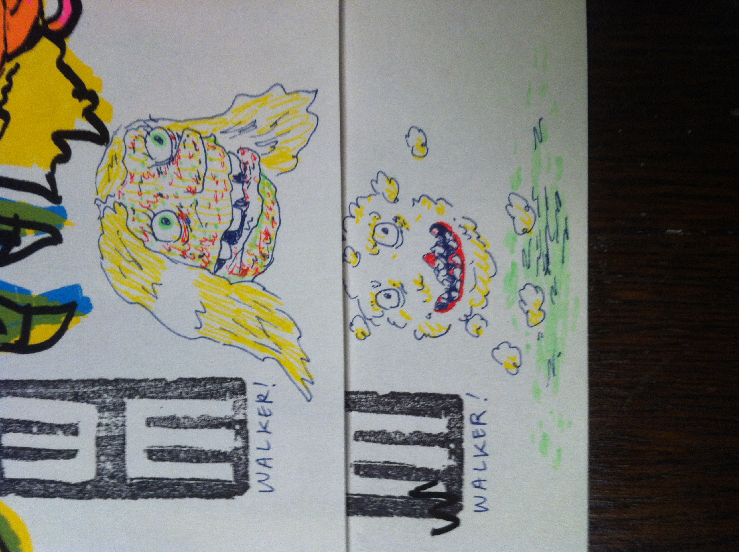 Each Blob Revelation screen print is a 4 layer screen print, signed and numbered with a couple of chop stamps and each has a little unique drawing on it! 8" x 11" Black frame. Edition of 15.