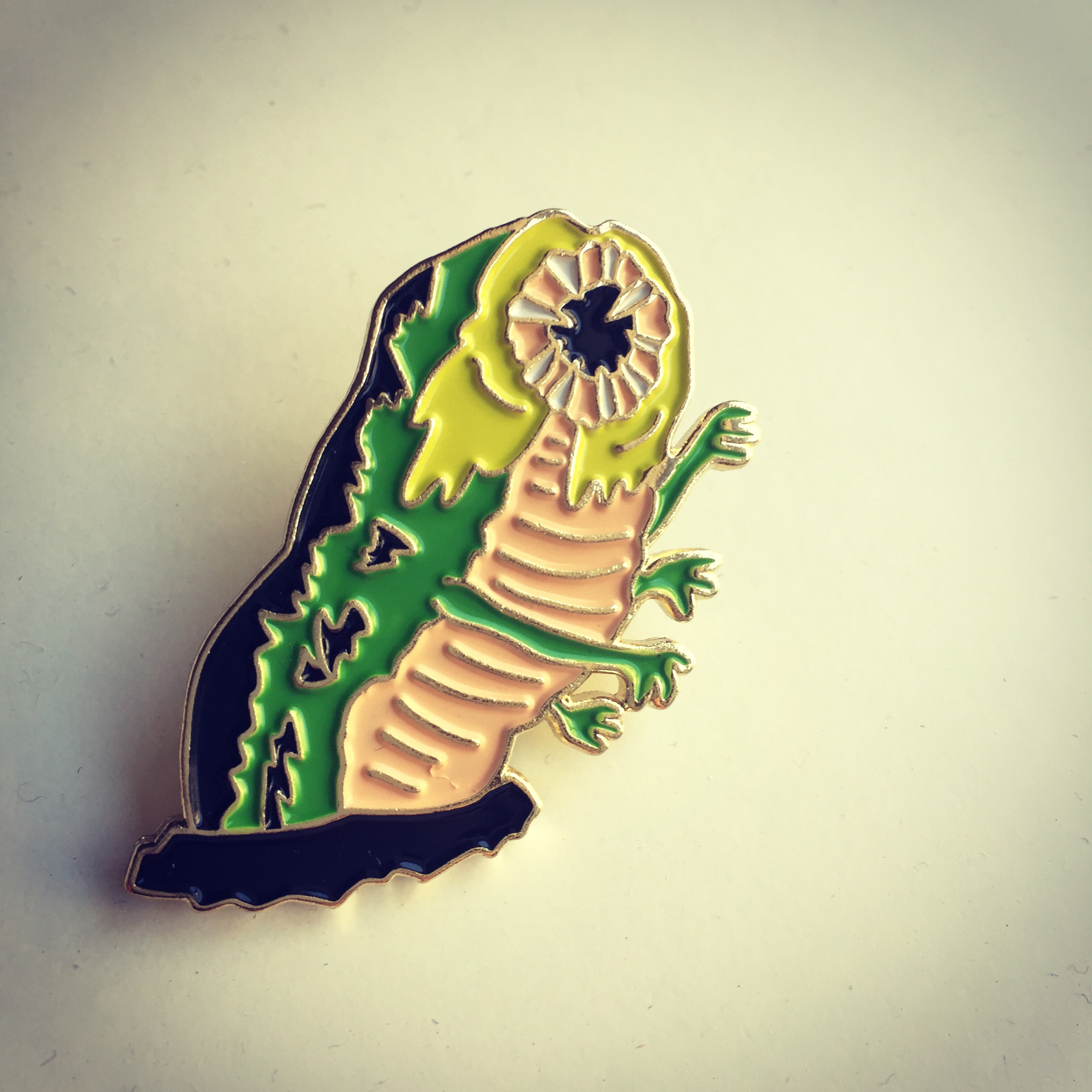 Enamel pin, 5 colors, approximately 1.5" tall and 1" wide. The Cranston Worm is an ancient and secretive creature that terrifies authorities of all stripes.