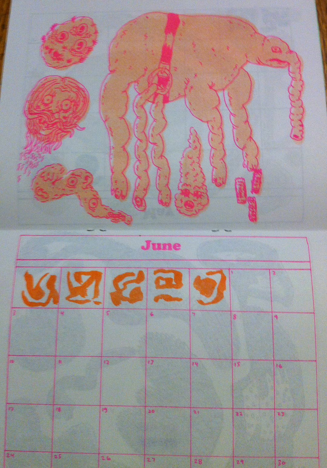 This year features 13 months worth of Blob Revelations! 2-color risograph printed! 8.5 x 14" when hanging!