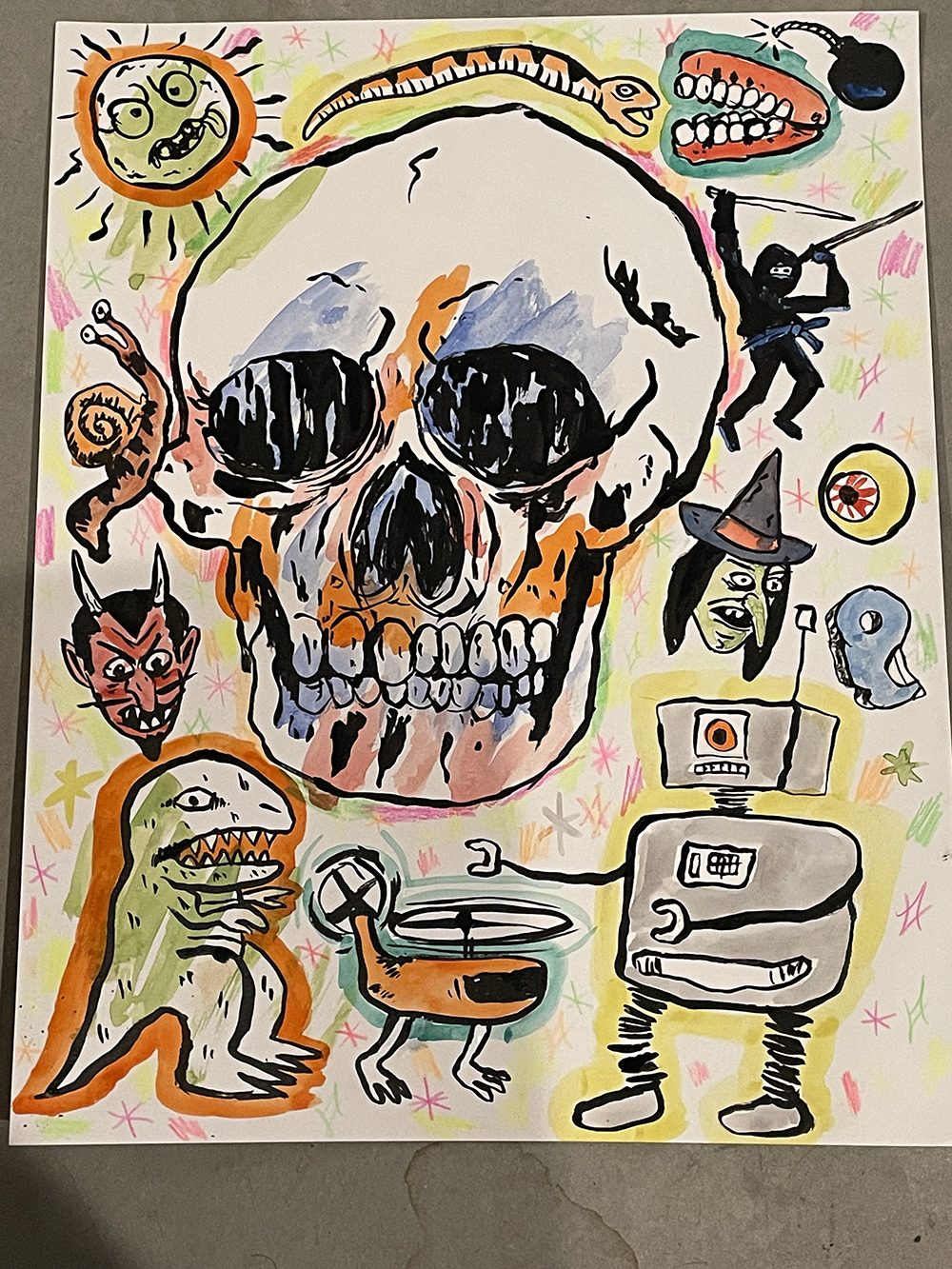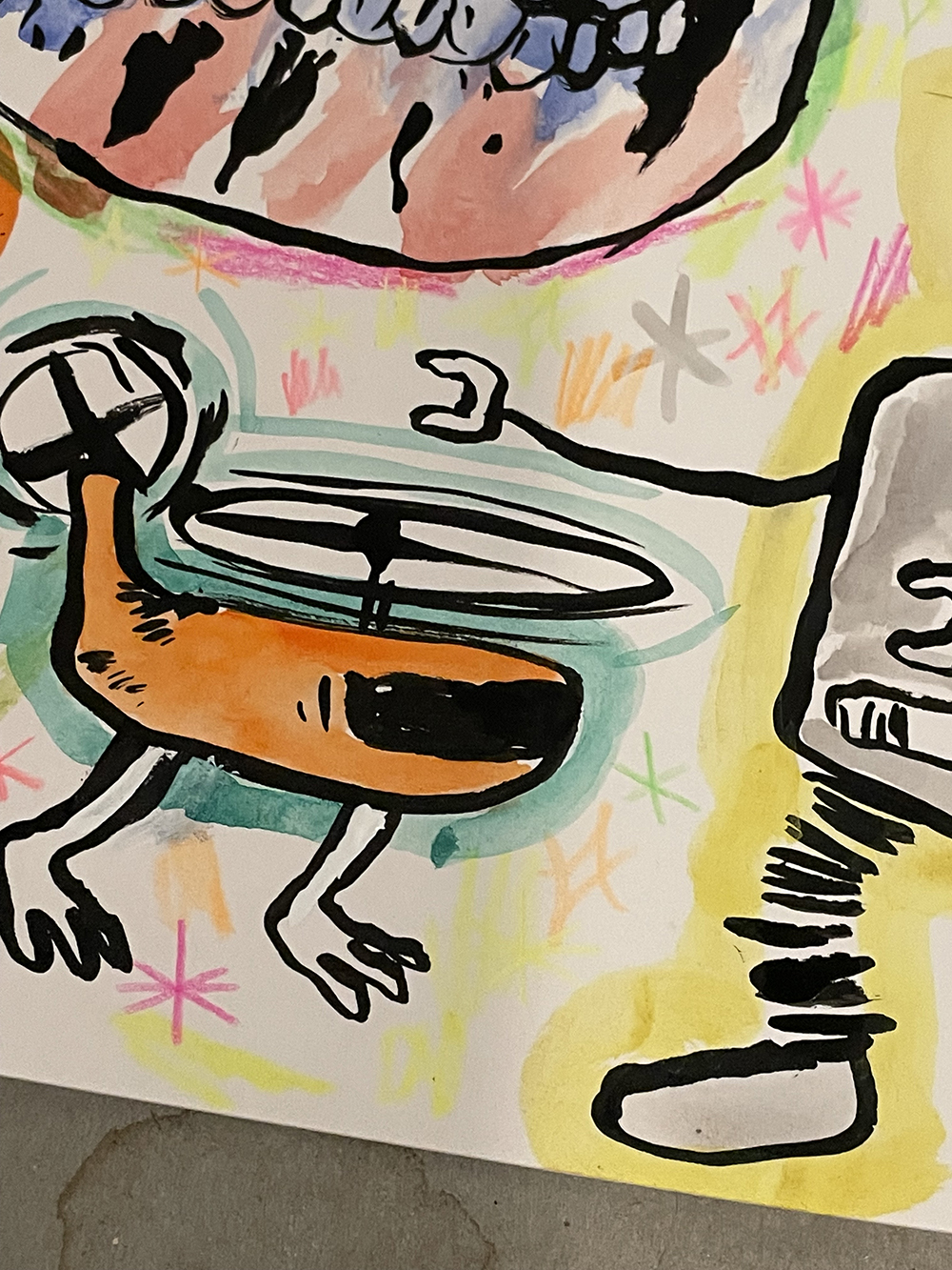11"x14" Bristol! Watercolor X Sumi Ink X Neon Color Pencil!!! Drawn Aug 7th 2023