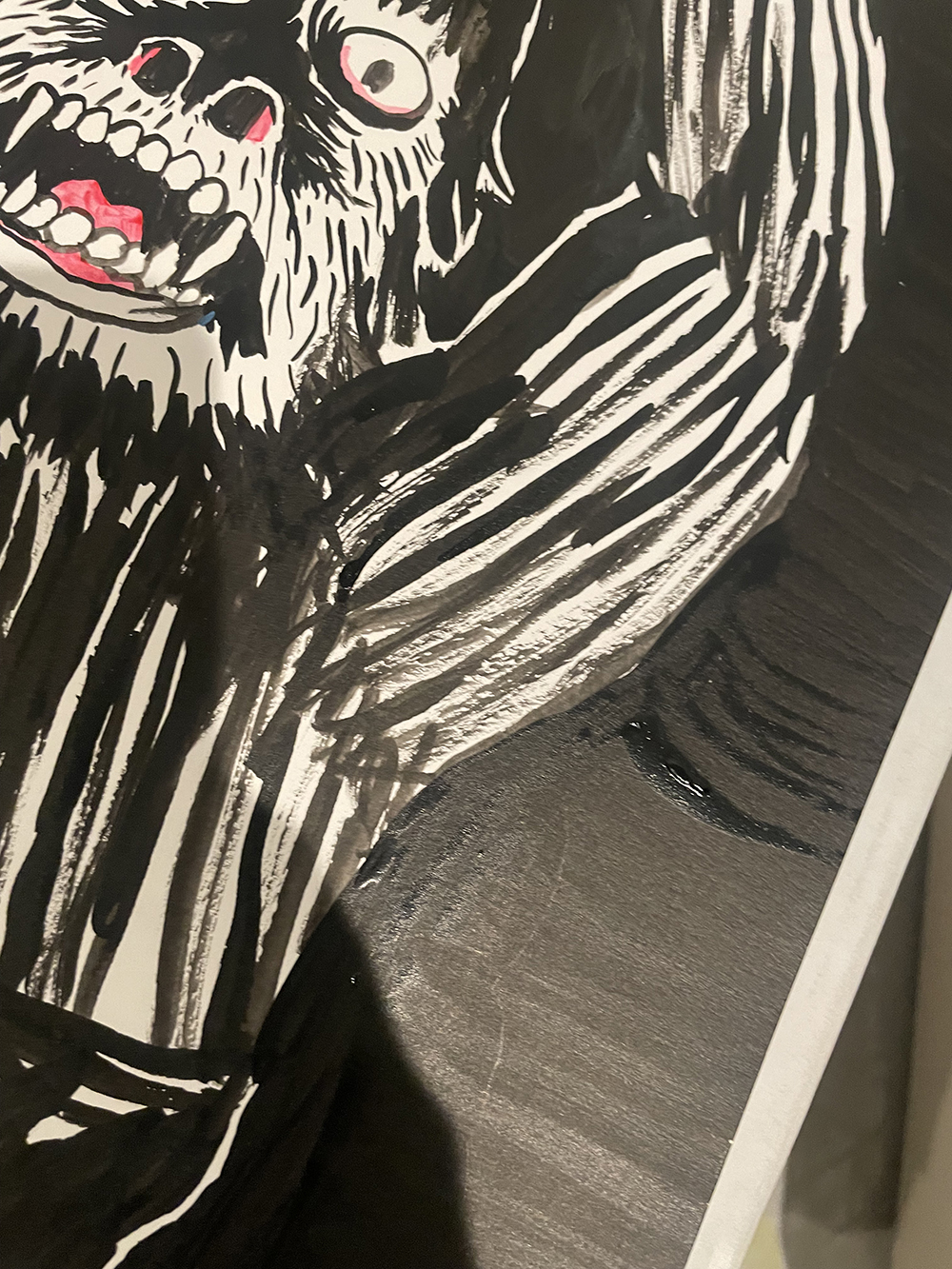 Its a sumi drawing of a rubber gorilla that's in the background of a Peewee Herman Calendar from 1990! 11" x 14" on Bristol! Ink with Gouache!