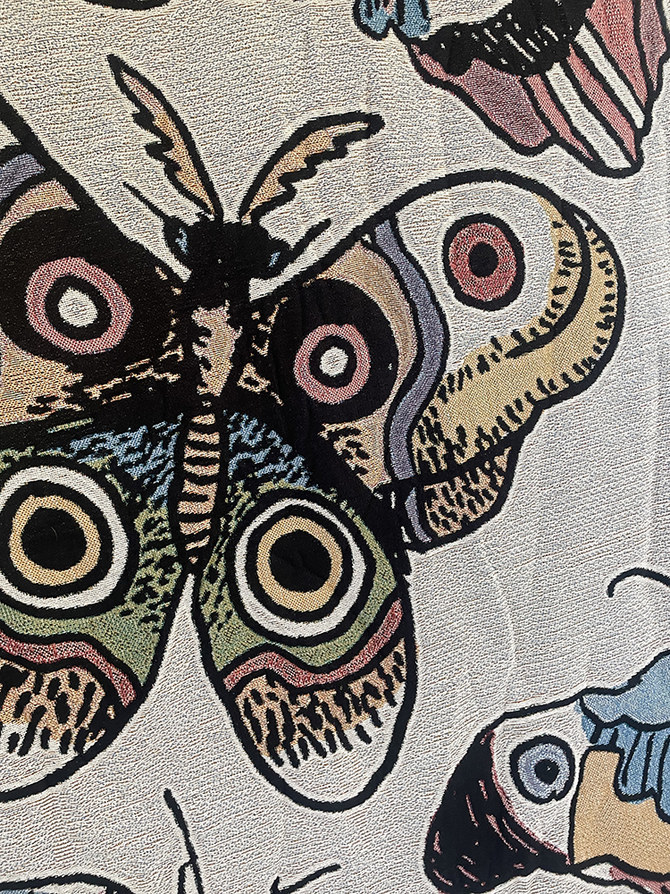 Woven Blanket with Moth design! 100% Cotton! Soft and Nice! 60" x 80"