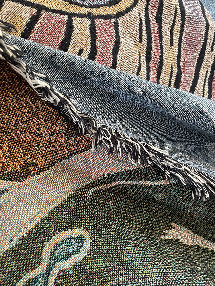 Woven Blanket with anatomical Muffler Man (as Paul Bunyan) design! 100% Cotton! Soft and Nice! 60" x 80"