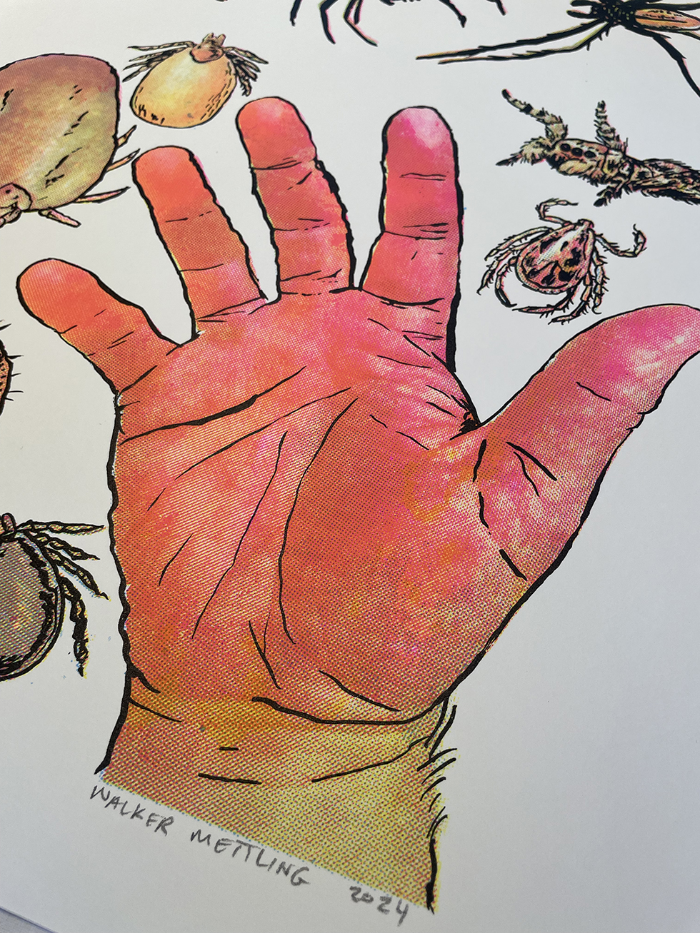 4 layer screenprint, hand pulled on heavy 18x24" watercolor paper. Signed, open edition. Because it's hand printed each print has minor differences--which is what makes them cool, right? Booyah!